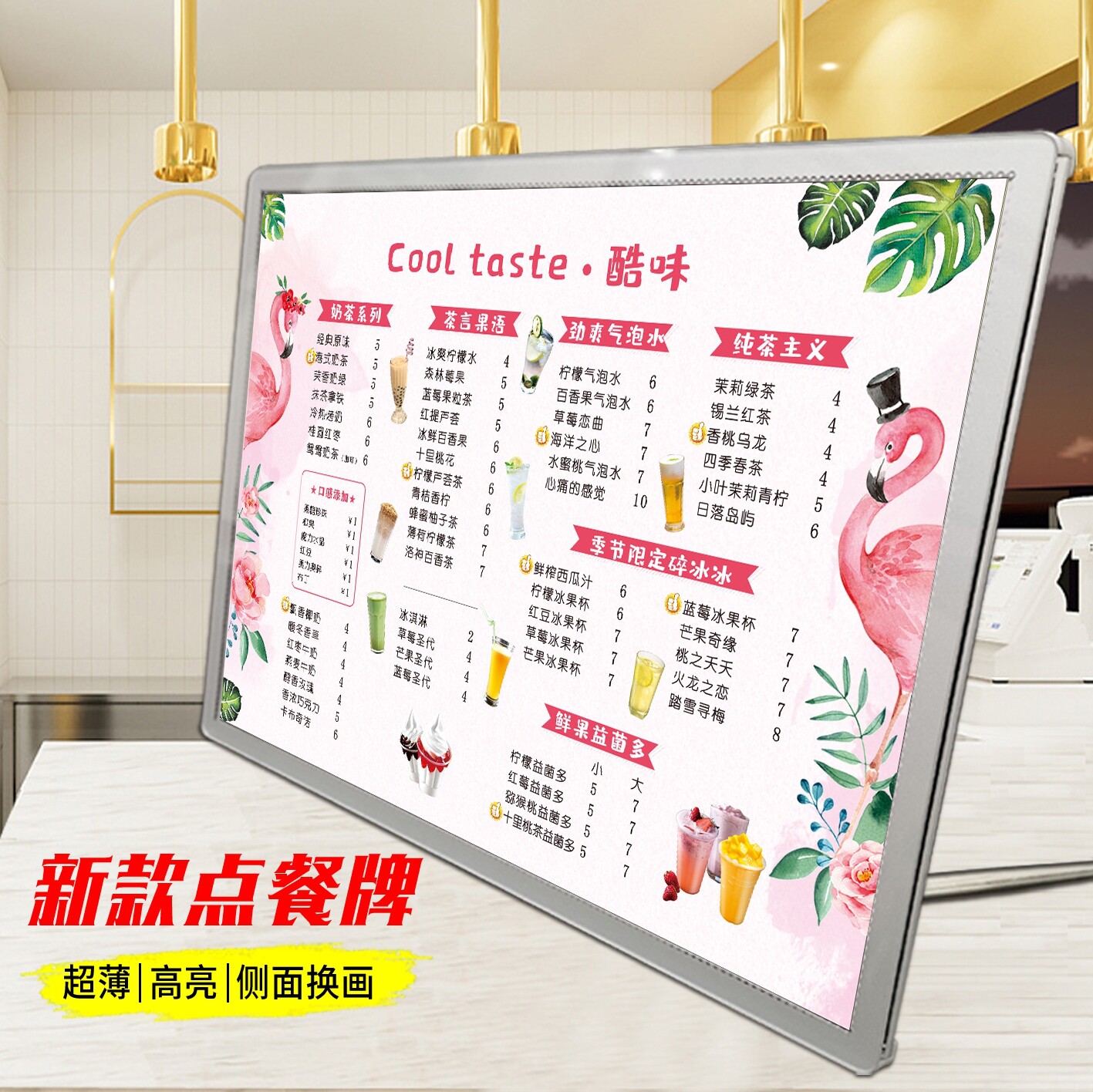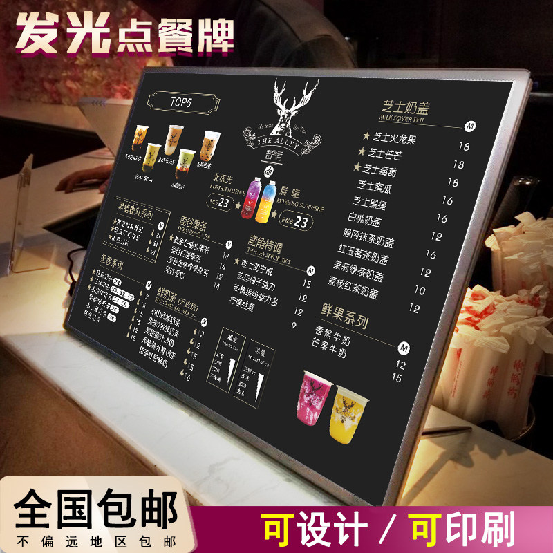 Milk tea shop setting table luminous ordering board menu display board lamp printing design making acrylic price list a3