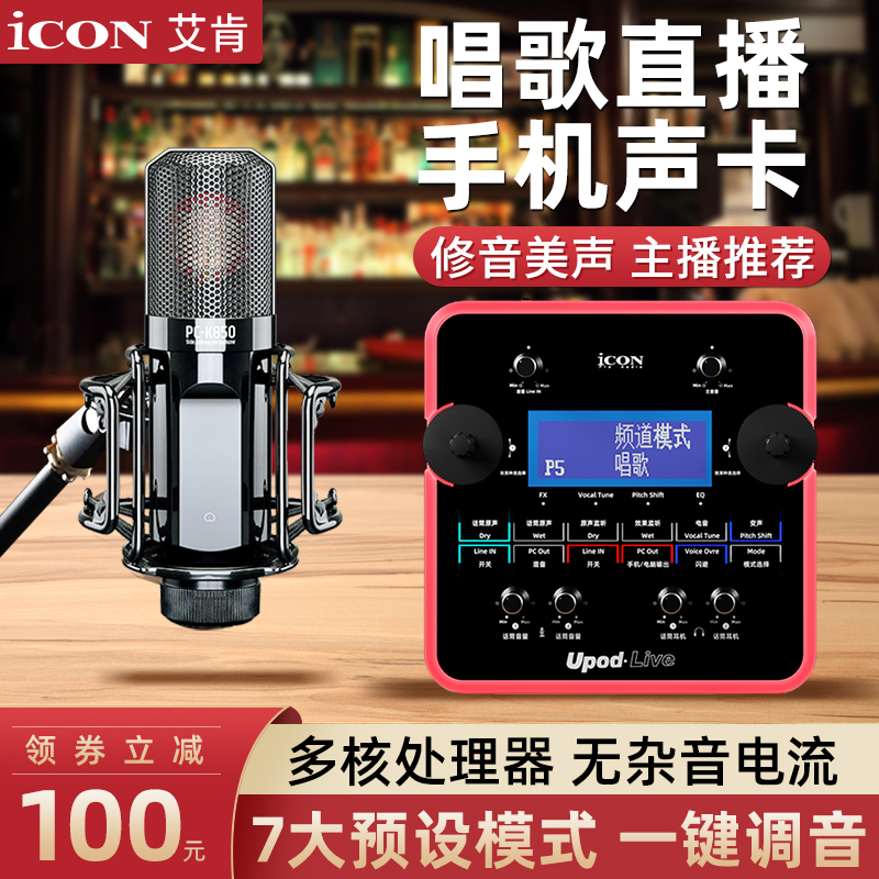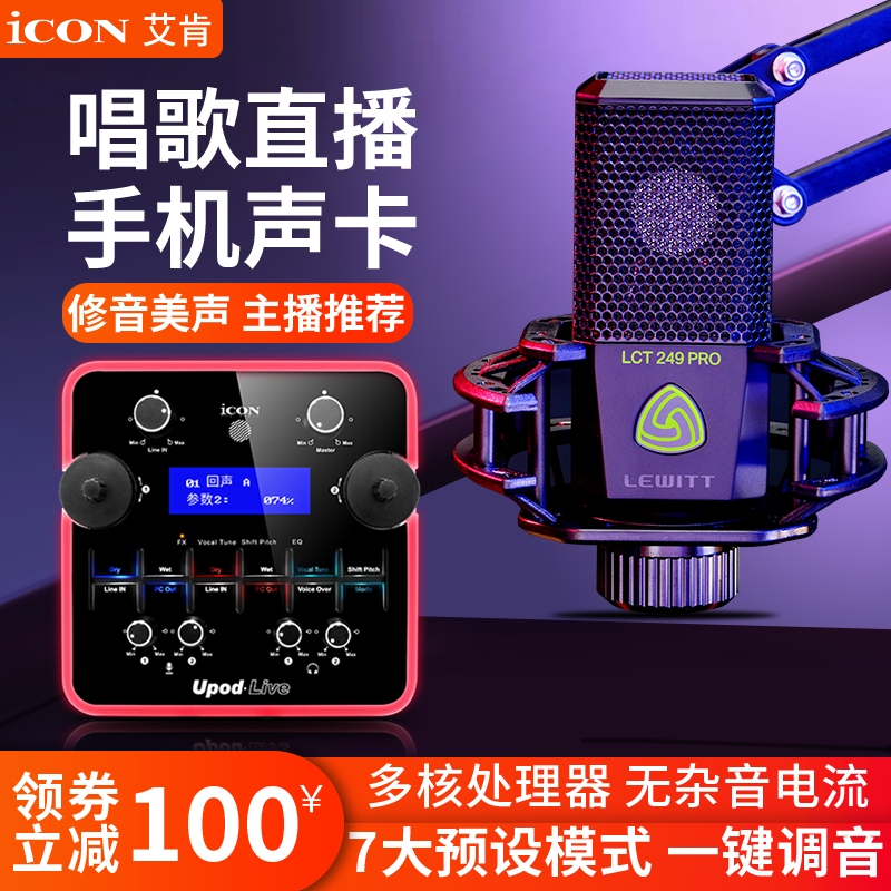 ICON Upod live Aiken sound card live singing mobile phone special equipment full set of official flagship Net red professional microphone set usb external tremble K song recording outdoor Independent