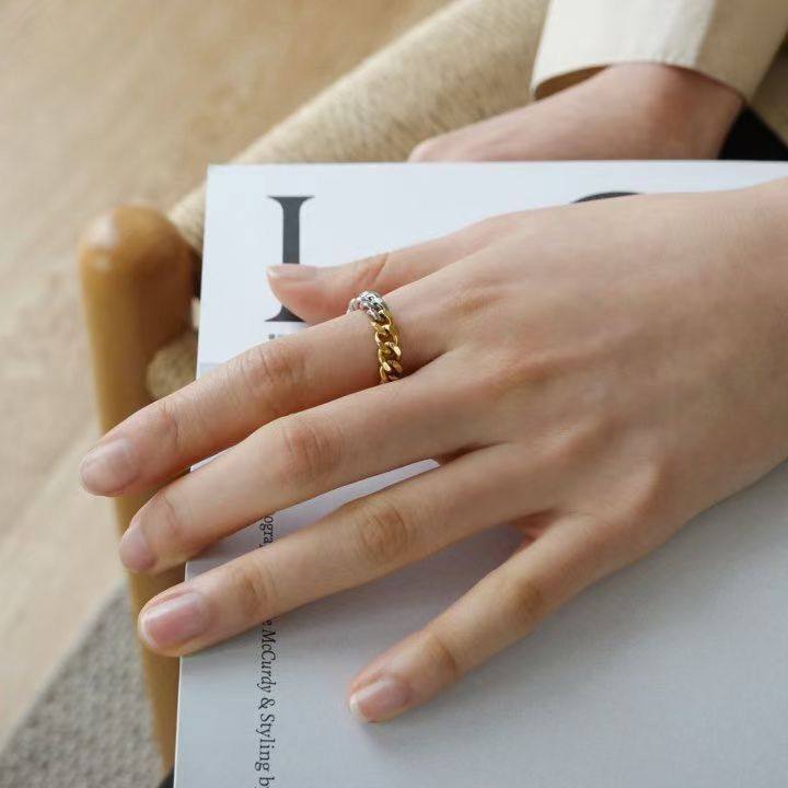 2021 Korea Dongdaemun Noii Jewelry Splicing Bicolor Personality Net Red Ins Tide Ring Lady Ring