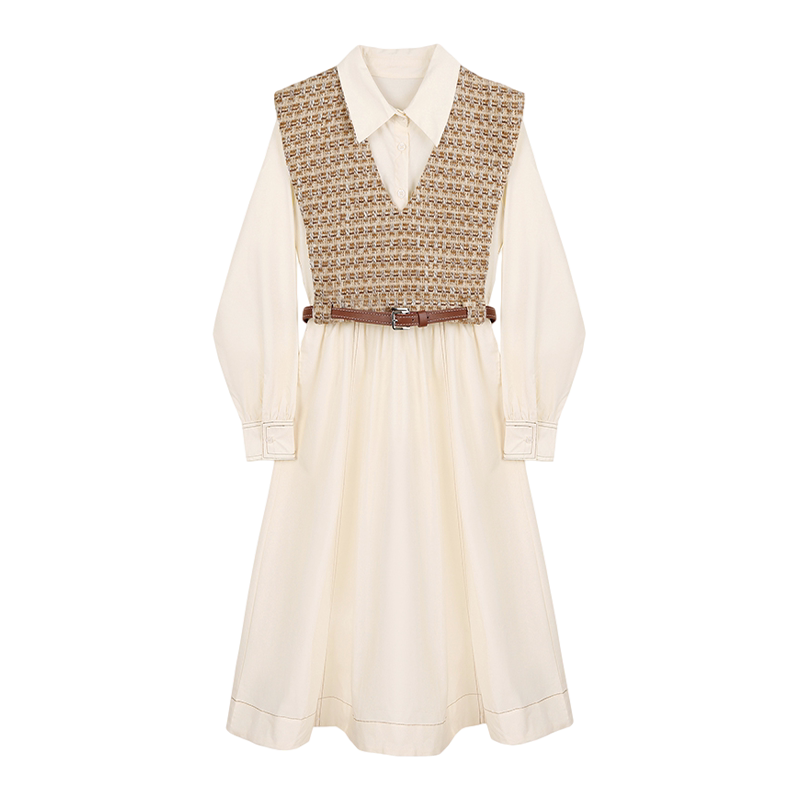 (Hong Kong Designer Brand) Dress Set Women's Braided Vest Waist Shirt Dress Fashion Two-piece Set Pre-set