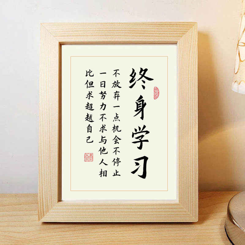 Lifelong learning students inspirational calligraphy works Chinese photo frame table table decoration motto calligraphy painting hanging painting