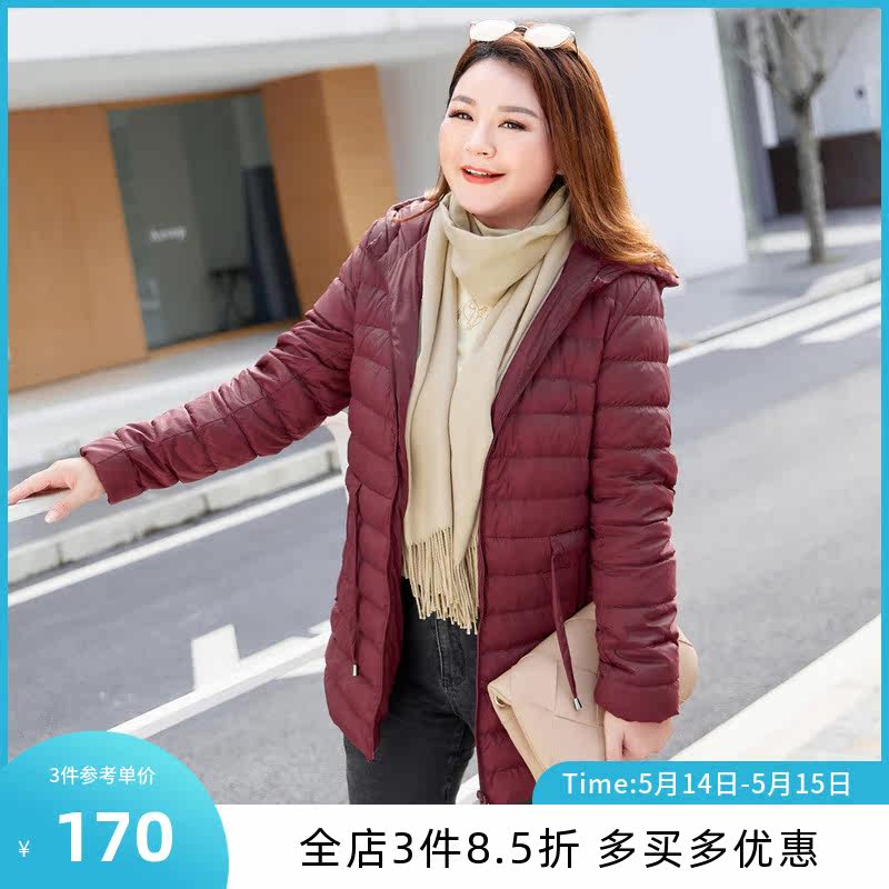 (clear bin RMB200 ) Large size women's dress Winter Fat MM Lianhood 90% white duck suede mid-down jacket