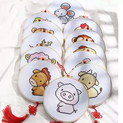 12 zodiac cross stitch 2020 new small pieces children's handmade simple thread embroidery pendant novice self embroidery