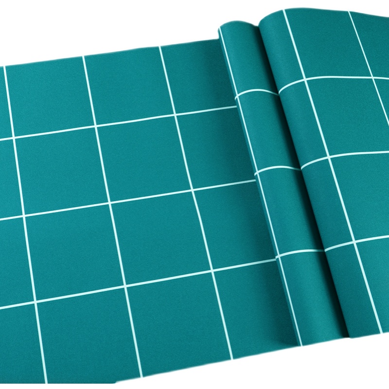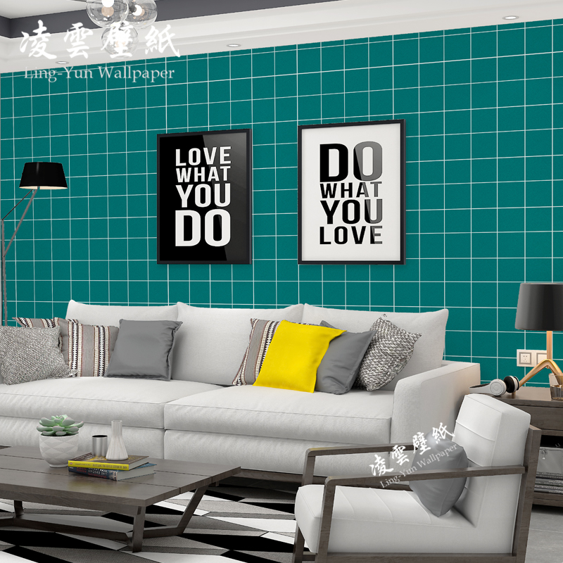 2022 new elegant green plaid wallpaper Little Qing New milk tea shop beauty salon background thick sheet waterproof wallpaper