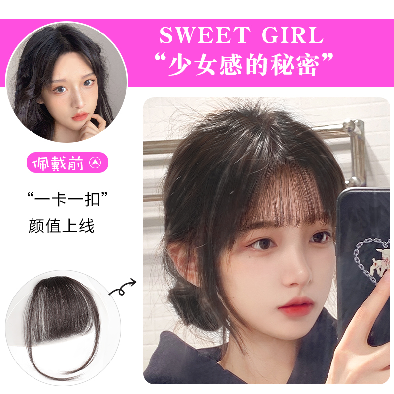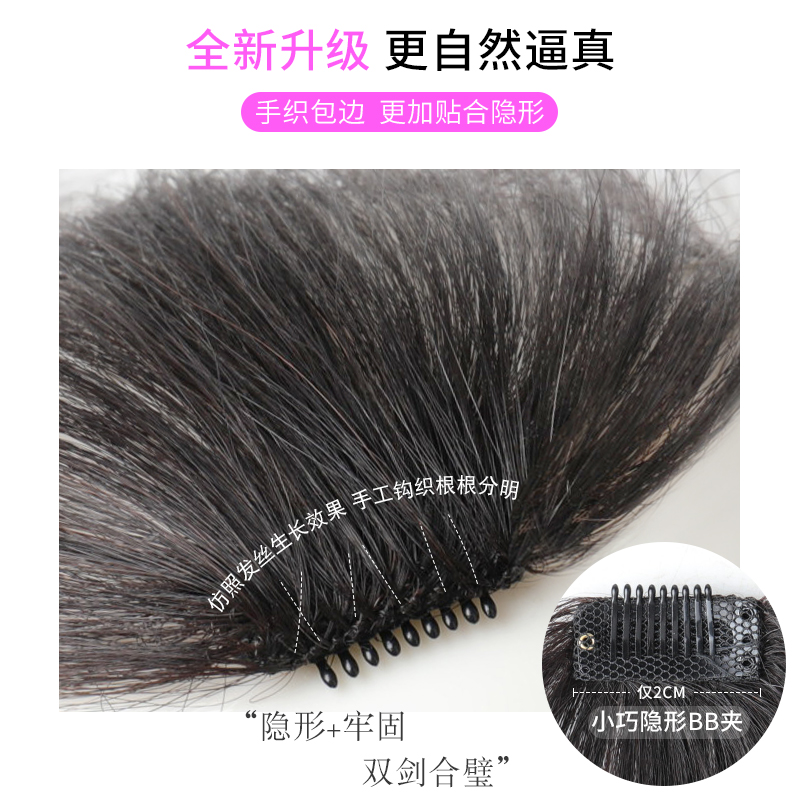 Hand-crochet full real hair (sideburns-natural color)-model with the same hand-woven full real hair (sideburns-natural black) hair volume upgrade hand-crochet full real hair (sideburns-dark brown) hair