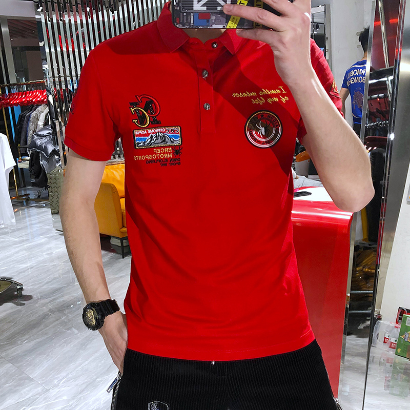 Europe station 2021 summer new men's fashion brand slim European lapels short sleeves T-shirt badge embroidered polo shirt