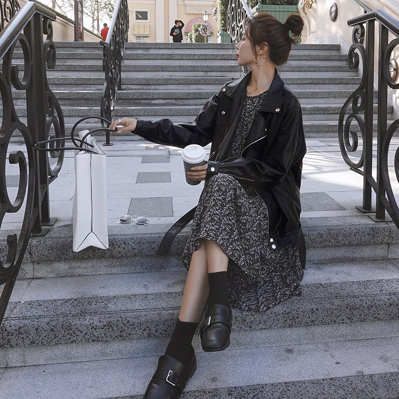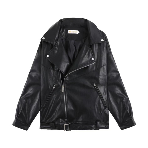 Port wind in the long version of the leather jacket female 2021 autumn and winter Korean version loose trend BF wind casual motorcycle leather jacket female