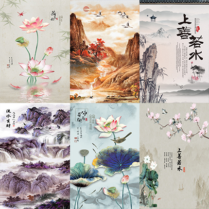 Landscape lotus flower modern Chinese flowers open rich and expensive massive tuku vertical map
