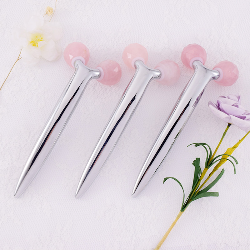 Natural Powder Crystal Jade Roller Massage Instrument Double Chin Facial Cosmetic Instrument 3D Massager Stick