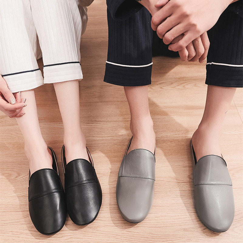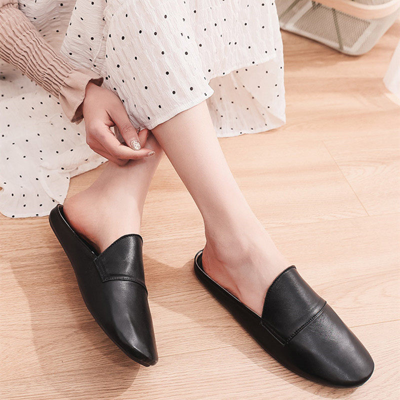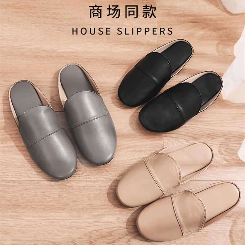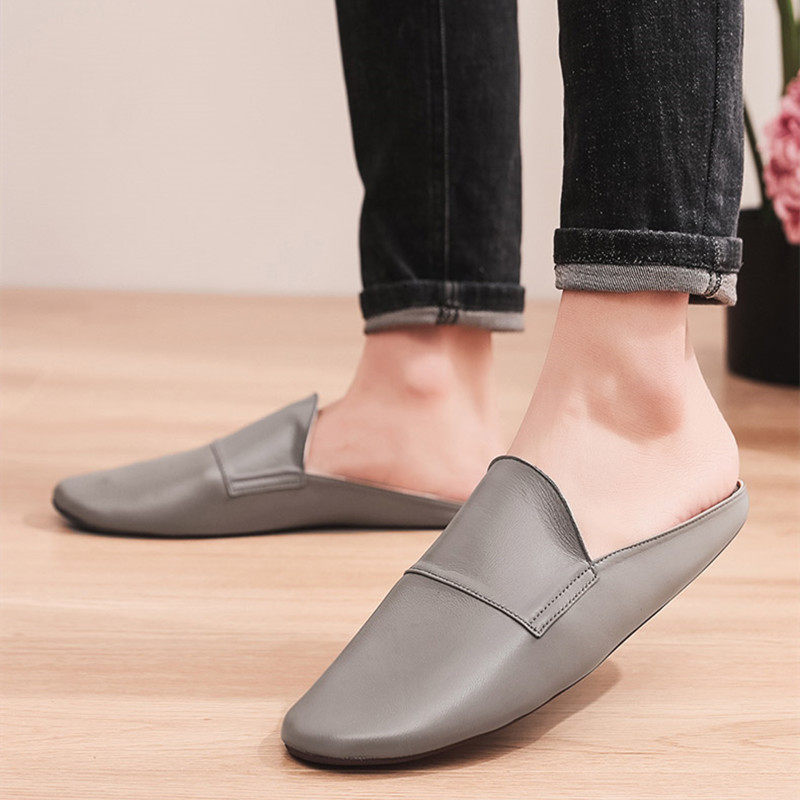 Sheepskin Baotou drag home women's breathable non-slip spring and autumn simple mute Olin high-end leather soft bottom slippers men