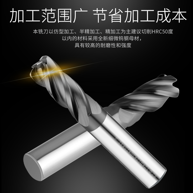 Culvert numerical control 50 degrees tungsten steel round nose knife 2-8 R0 2-R3 integral hard alloy 4-edge bull nose milling cutter arc