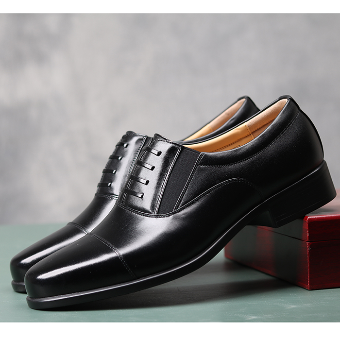 Business formal dress three-pointed men's leather office three-joint leather shoes wedding security duty work shoes three-section head