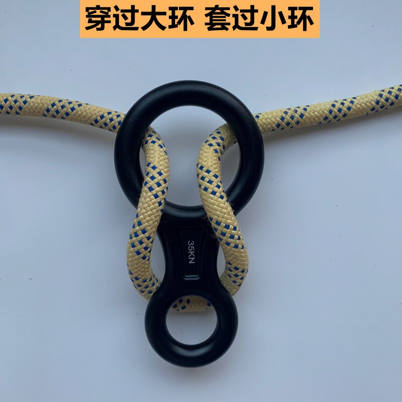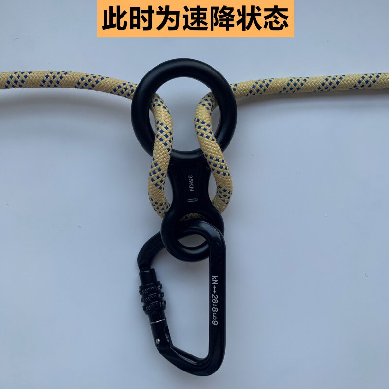 Outdoor rock climbing speed down 8 word ring descending escape slow down 8-word ring speed downfall snorkizer snorklowering descending