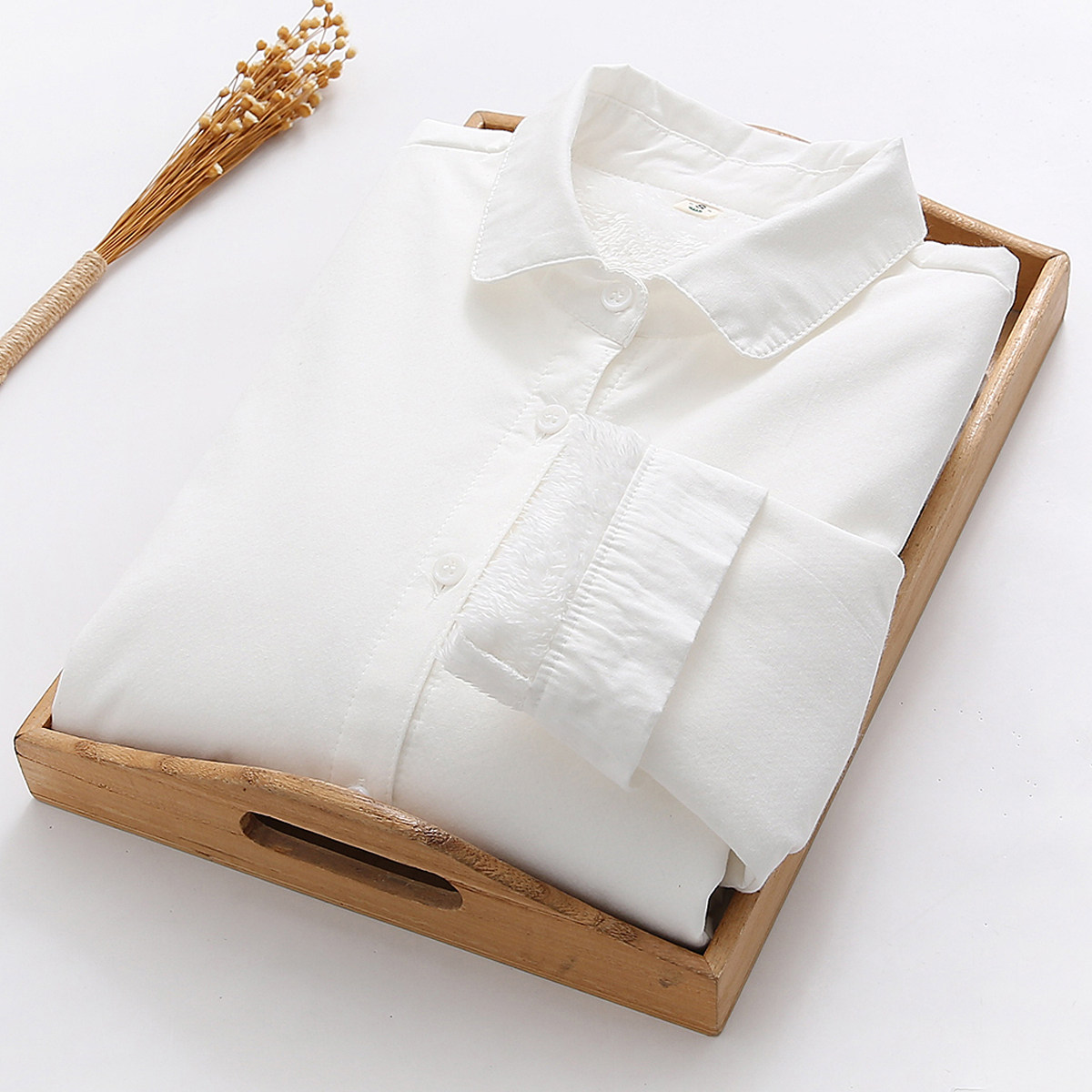 2023 fall new student white pure cotton plus suede shirt woman long sleeve 100 hitch base undershirt-Taobao