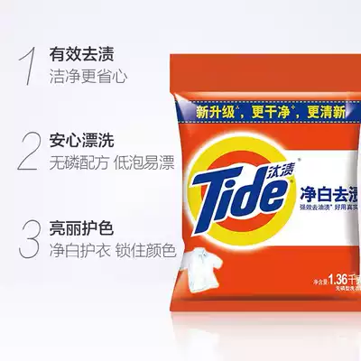 Tide clean white stain removal natural fragrance phosphorus-free washing powder 1360g Easy to rinse gentle does not hurt clothes does not hurt hands