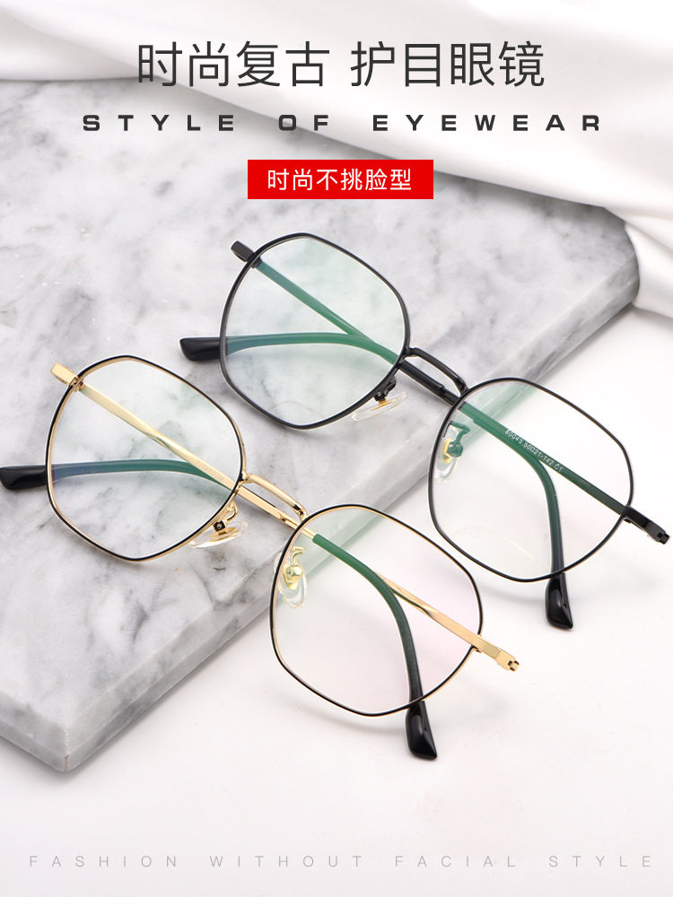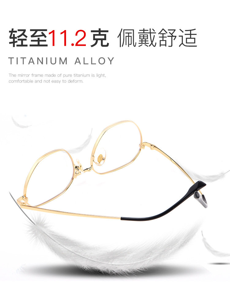 Myopia glasses women's ultra-light pure titanium can be equipped with degree big face slimming glasses frame women's polygonal plain face 80045