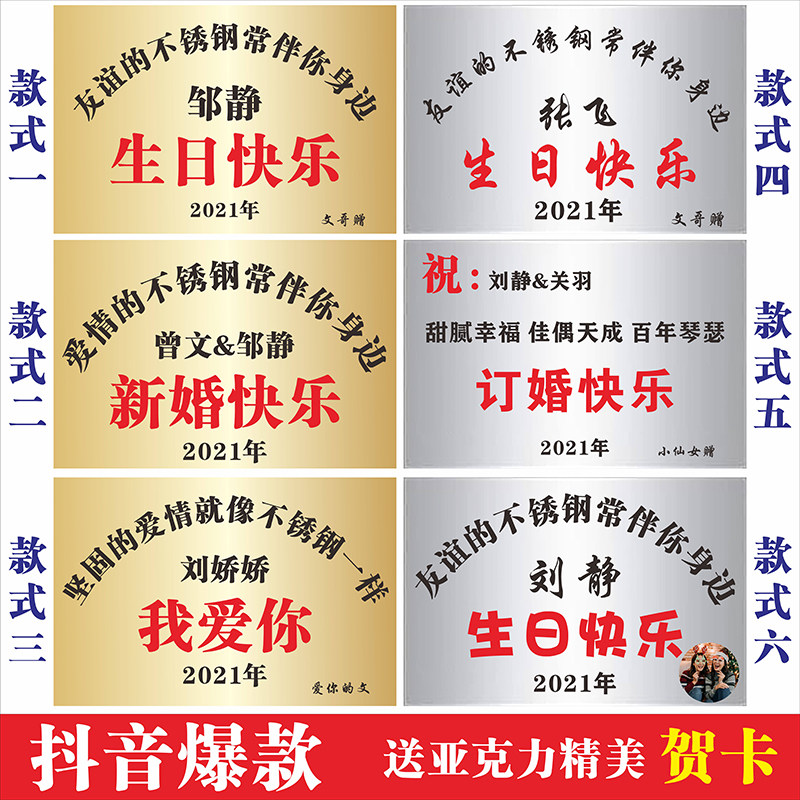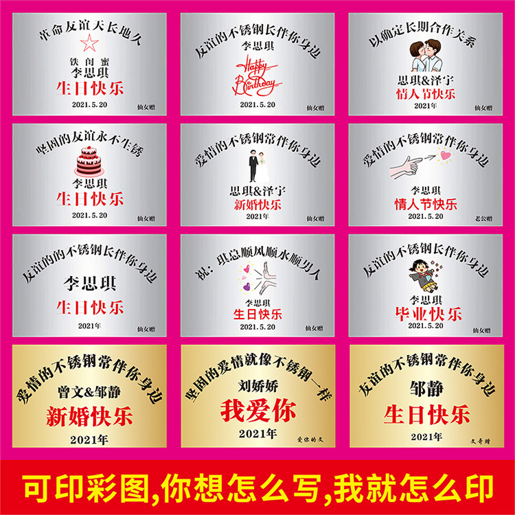 Sturdy love and friendship stainless steel plaque happy birthday gift commemorative iron plate confession lettering custom