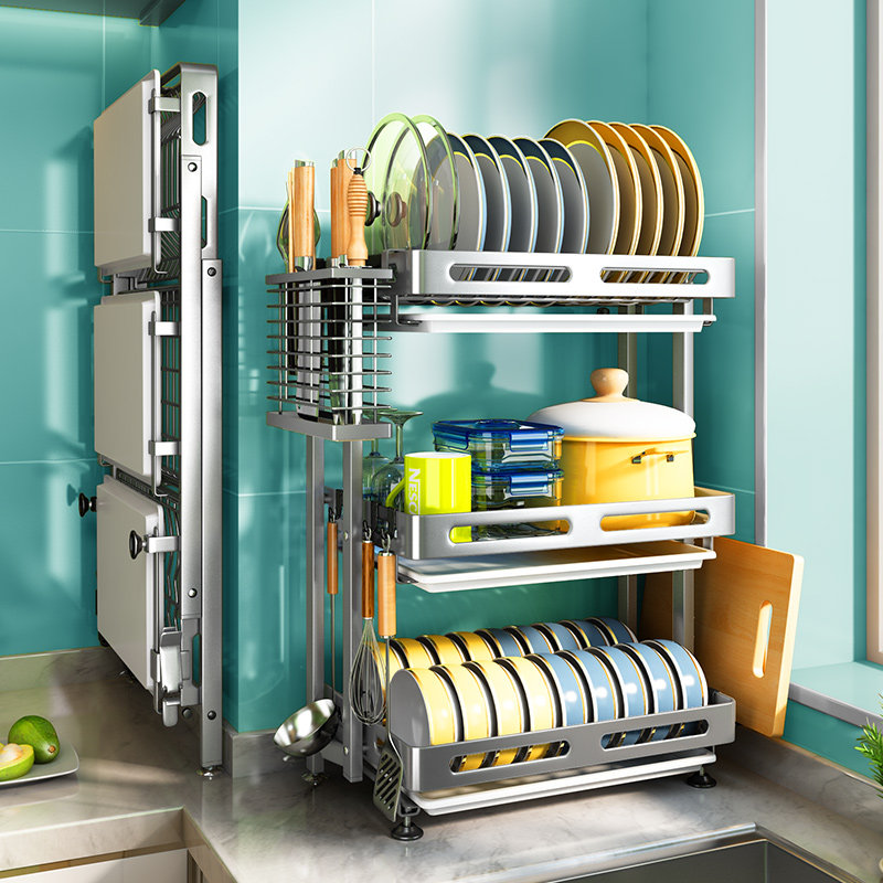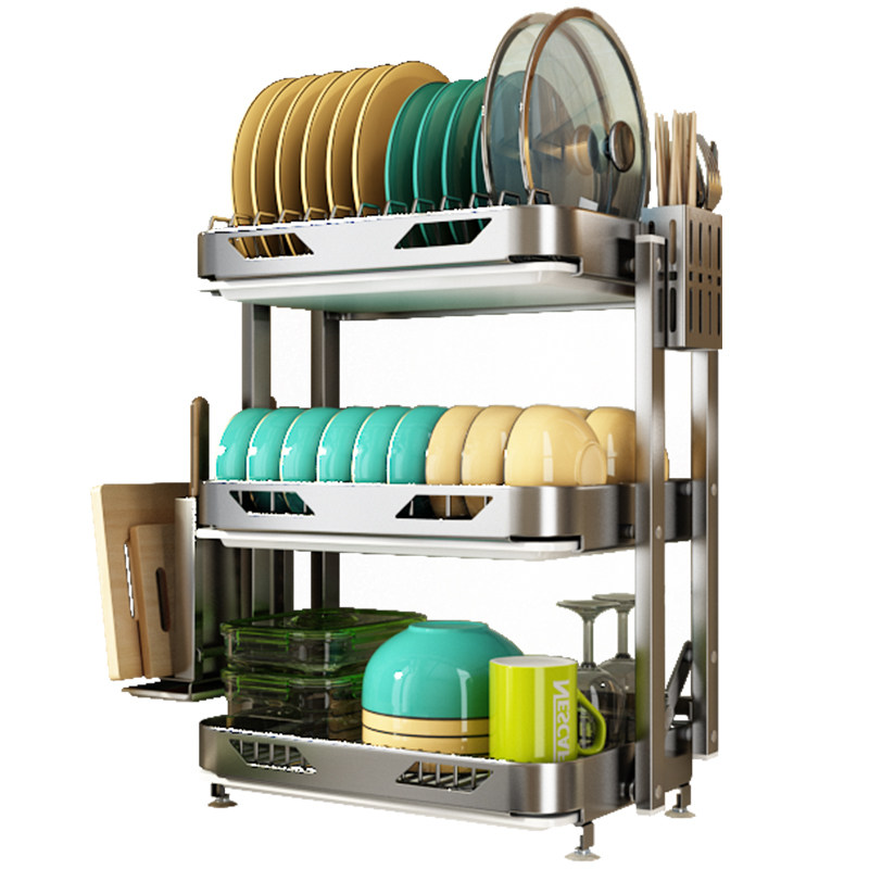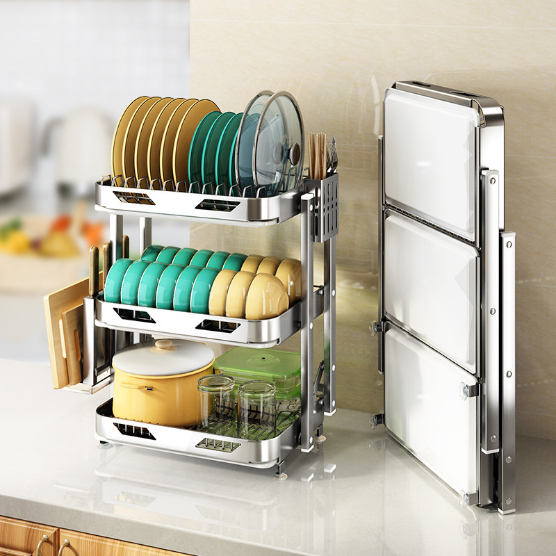 304 Stainless Steel Bowl Rack Drain Rack Kitchen Shelve Wall-mounted Bowl and Chopsticks Folding Bowl tray Dish Storage Cabinet