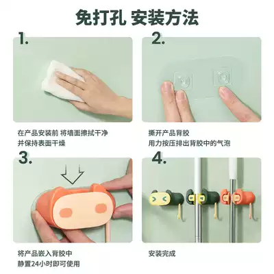 The mop adhesive hook-free hanging broom toilet strong holder mop cloth clip Wall Mount artifact