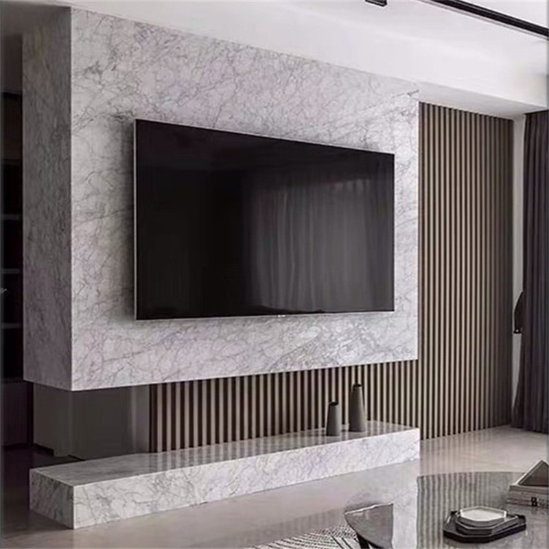 Minimalist natural marble TV cabinet floor custom gray light luxury high-end long stone floor cabinet custom processing