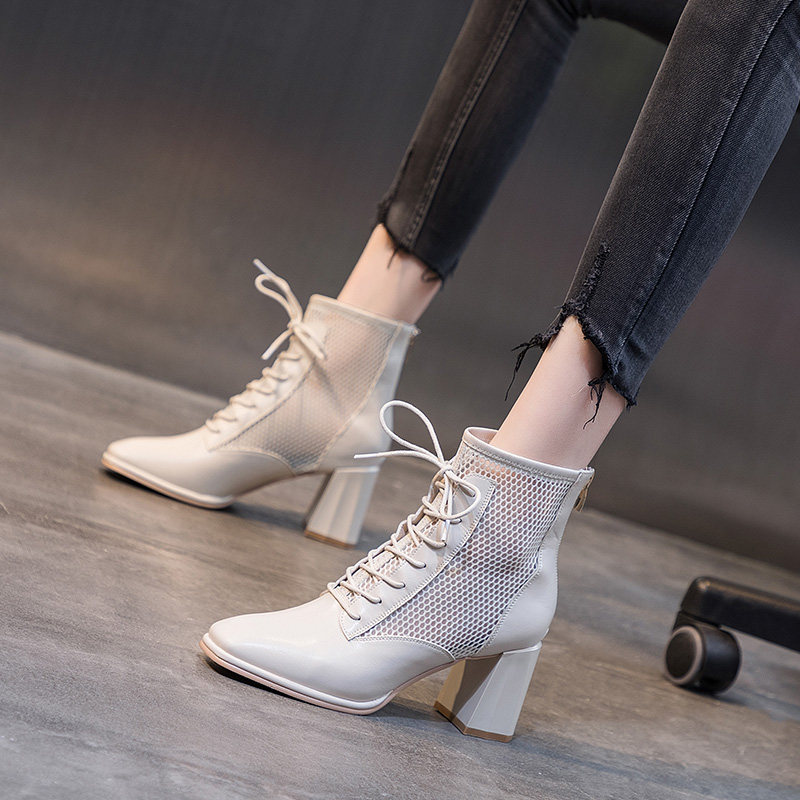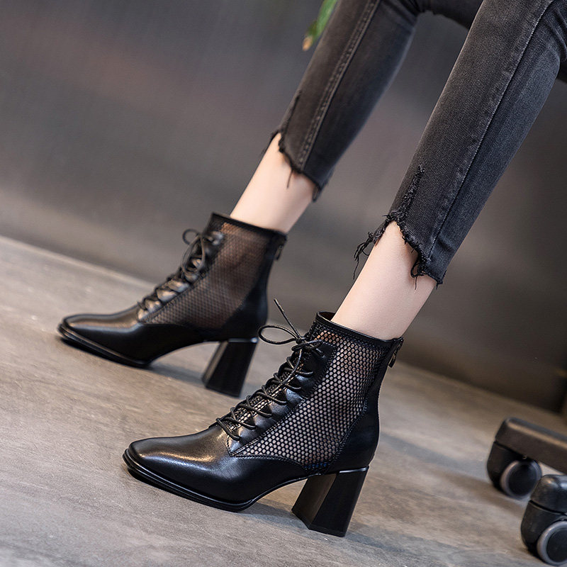High heels women 2021 new spring and autumn 2022 spring heel single shoe Martin short boots thin cutout mesh sandals