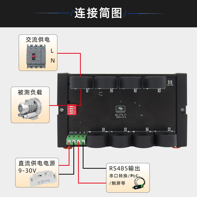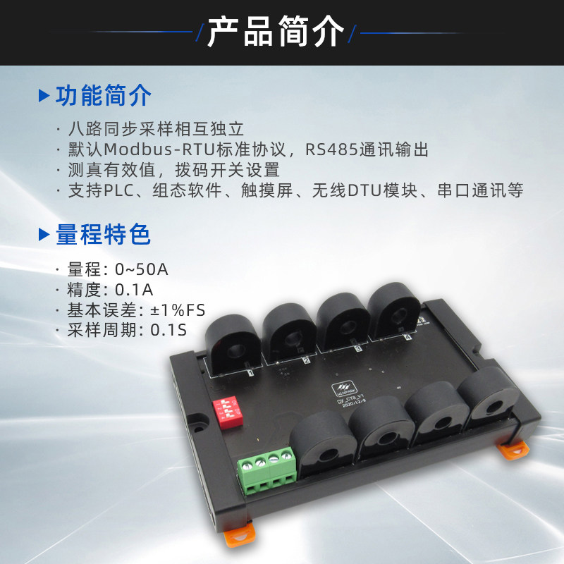8-way AC current and voltage acquisition module 0-50A isolation 485modbus communication current acquisition transformer