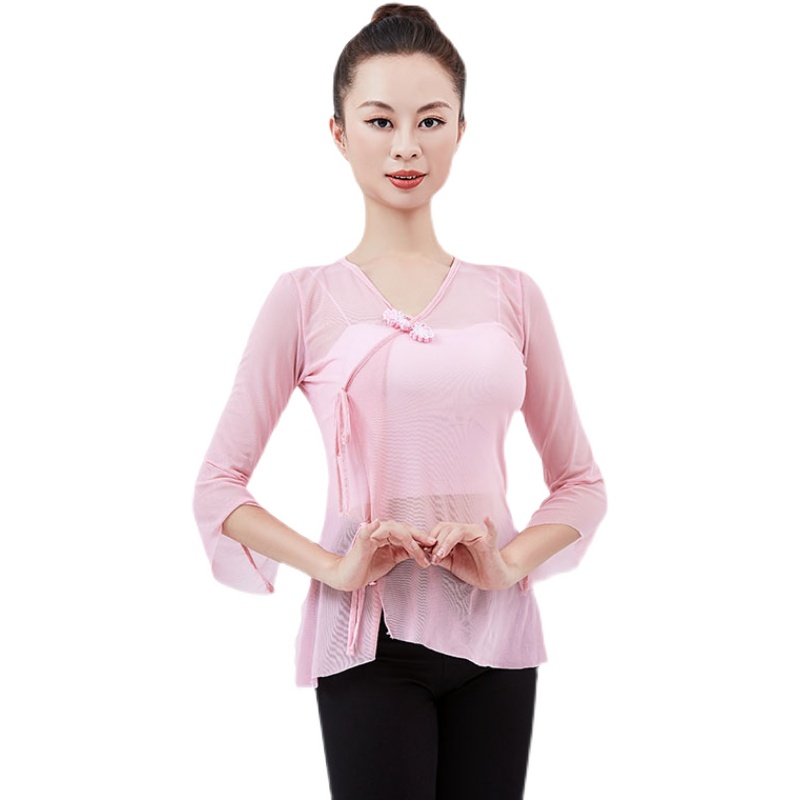 MiDee Classical Dance Clothes Women's Chinese Style Pan Buckle Trumpet Sleeve Body Rhythm Mesh Gauze Elegant Body Practice Clothing