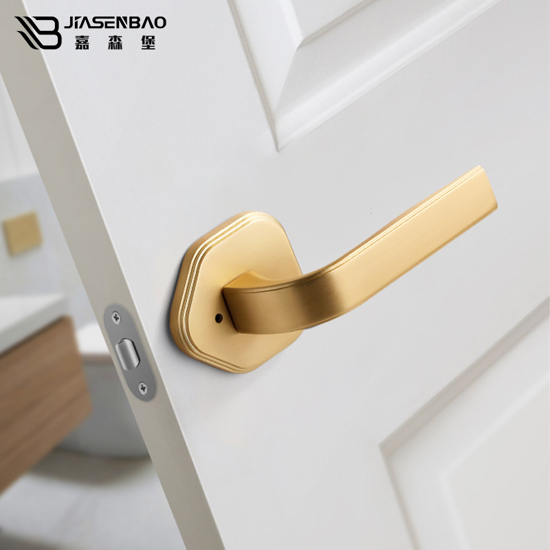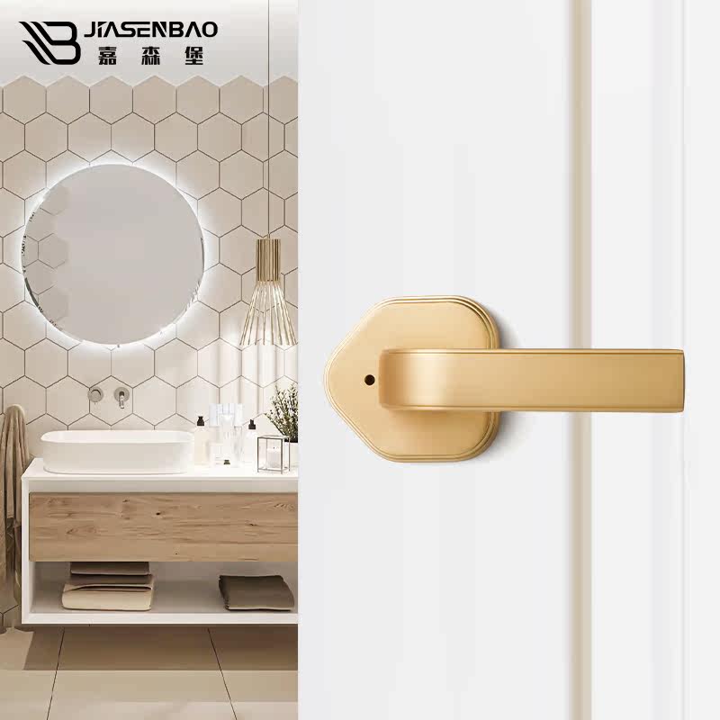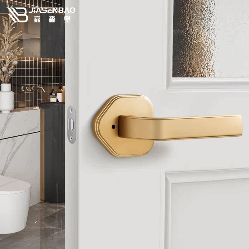 Garsenberg powder room door lock bathroom single tongue three-bar lock silent keyless brushed copper natural color wooden door handle