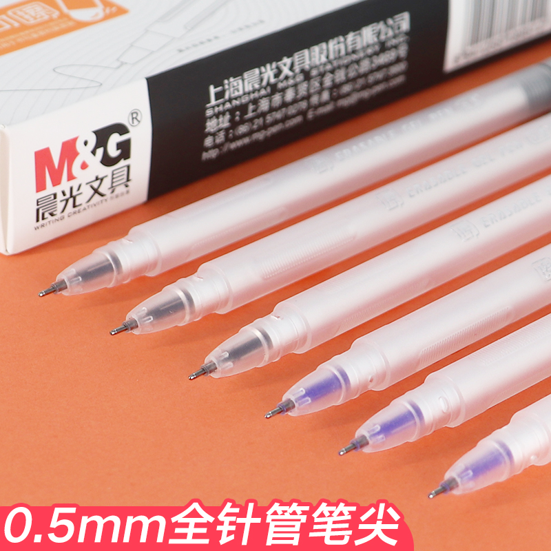 Morning light hot erasable pen 0 5mm Full needle tube Warhead Nursery School Children Elementary School Kids With Girls Cute Creativity Erasable Water-based Pen Boy Crystal Blue Pen Molo Easy To Wipe Refill