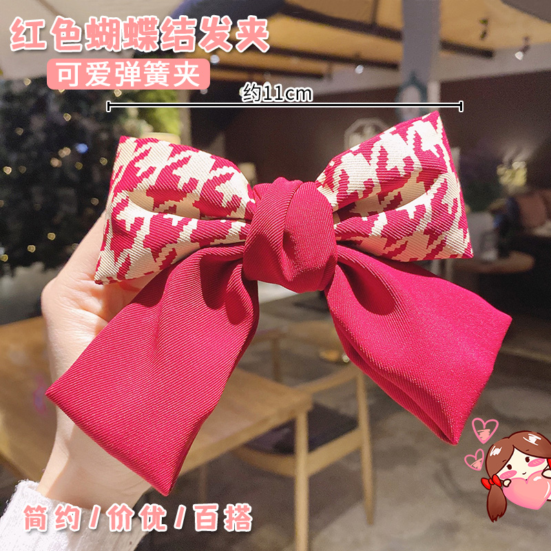 New Year Hair Accessories Butterfly Knot Hairpin Clip For Chinese New Year Gift Head Accessories Girl Rear Brain Spoon Baiyaki Festive Hair Clip Red Color