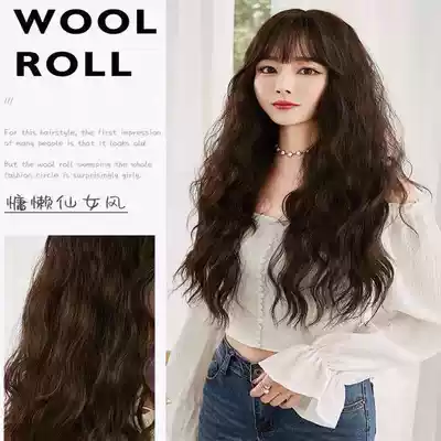 Wig female straight hair head 3D seamless hair extension simulation one-piece Air banghai long curly hair big wave replacement film