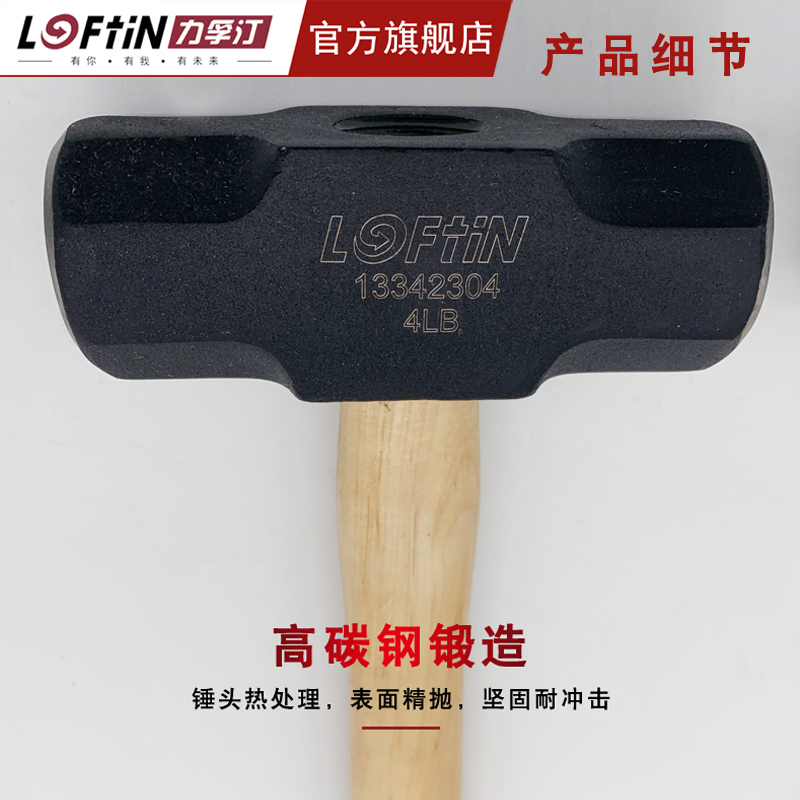 Lifuting tool heavy-duty wooden handle octagonal square head hammer smashing wall hammer masonry big iron hammer construction site with Lang head