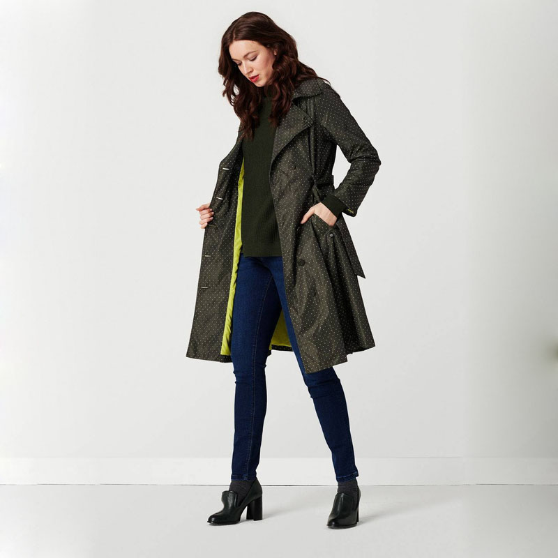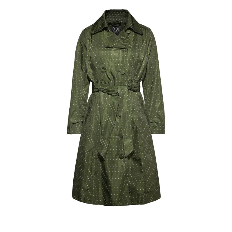 Temperament Thin Women's Dress Coat O's version Large size New long sleeves Wind Clothes Round Dot long version Army green single row buttoned over knee