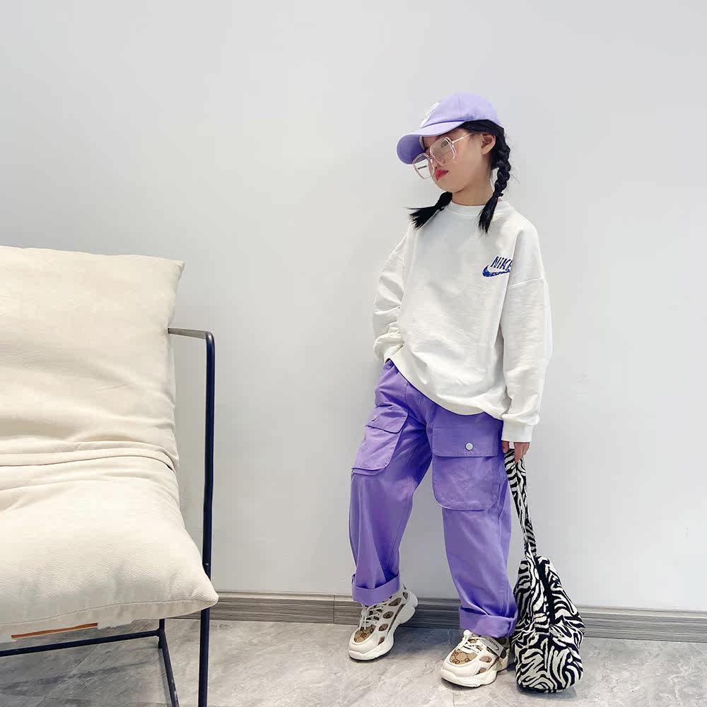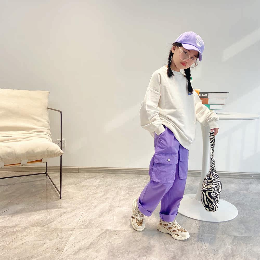 Girl Pants Spring Dress 2021 New Korean Version Foreign Pie Casual Spring Autumn Season Loose Long Pants Children Outwear Workwear Pants