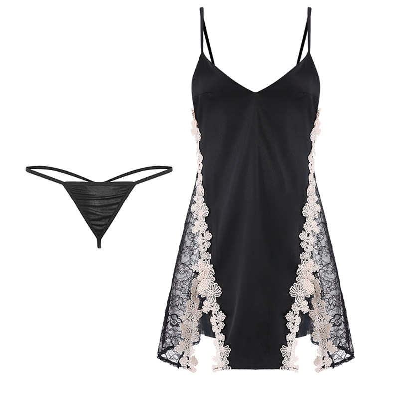 Sexy nightdress female summer hot to highlight the figure lace slit nightgown dress deep V suspenders red zodiac year home service