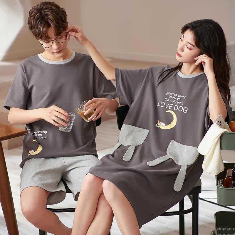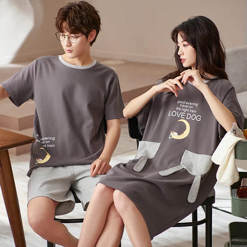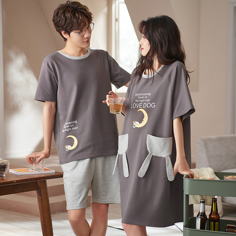 2 Sets Price Couples Sleepwear Summer Lady Summer Short Sleeves Pure Cotton Sleeping Dress Thin for men Loose Casual Home Wear