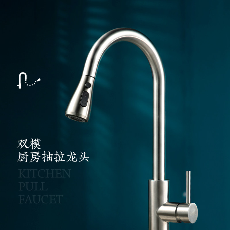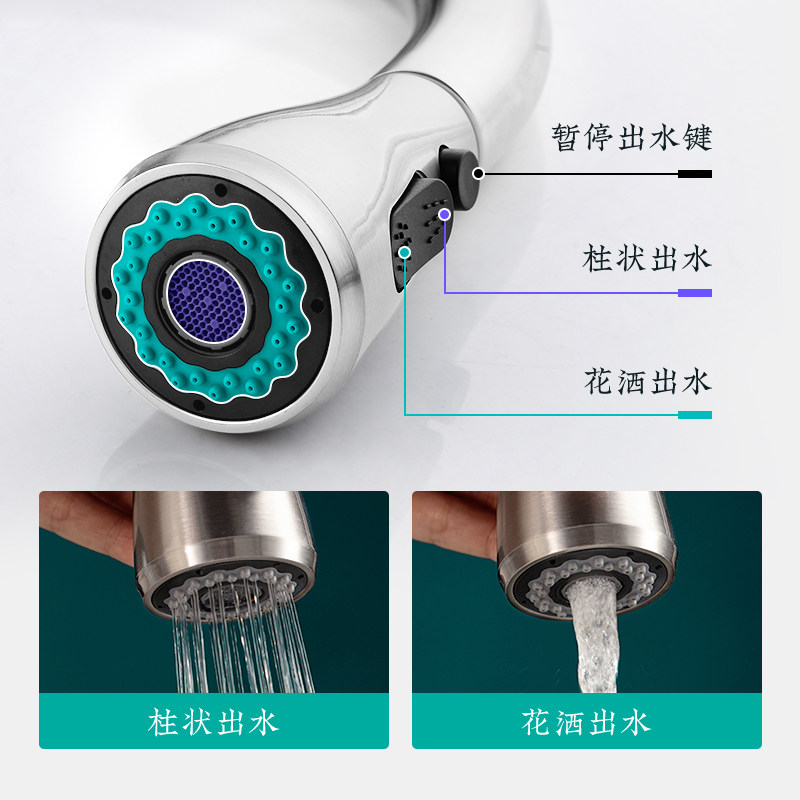 Stainless steel 7-character hot and cold pull-out faucet - dual-mode water outlet High-end refined copper cold and hot pull-out faucet - dual-mode water outlet