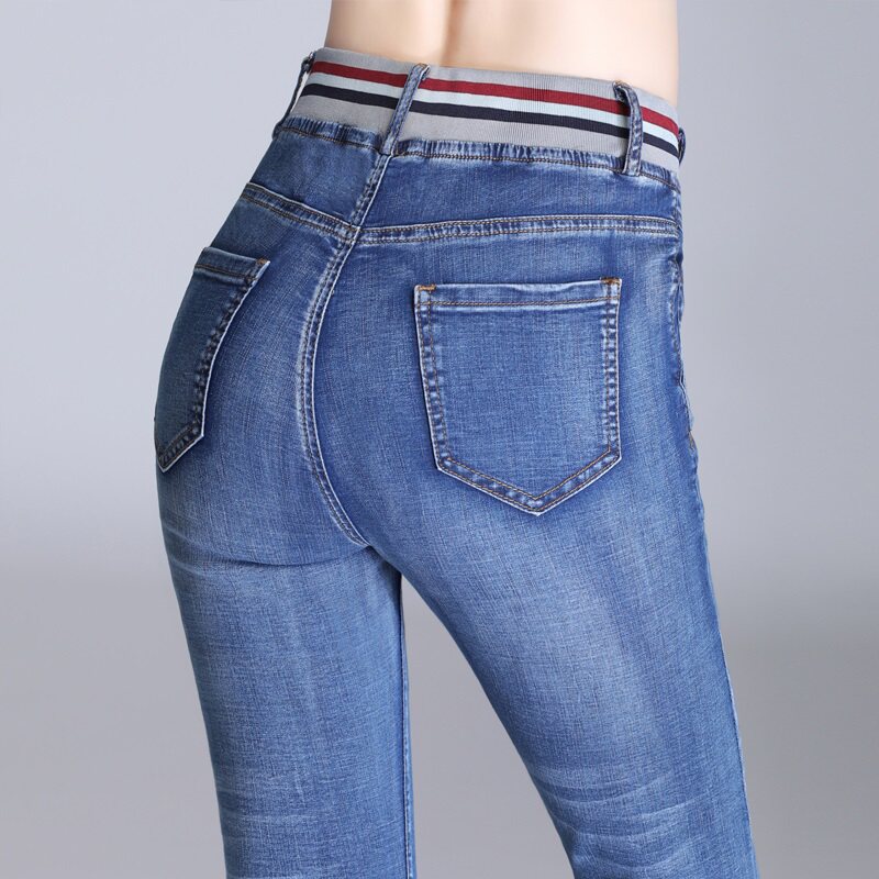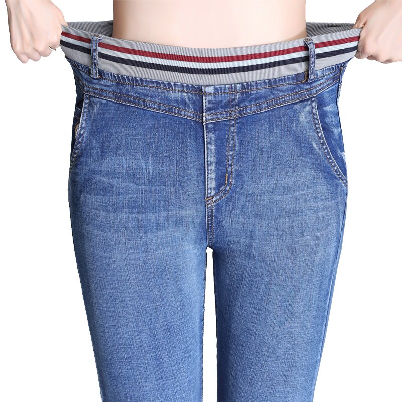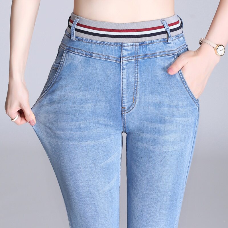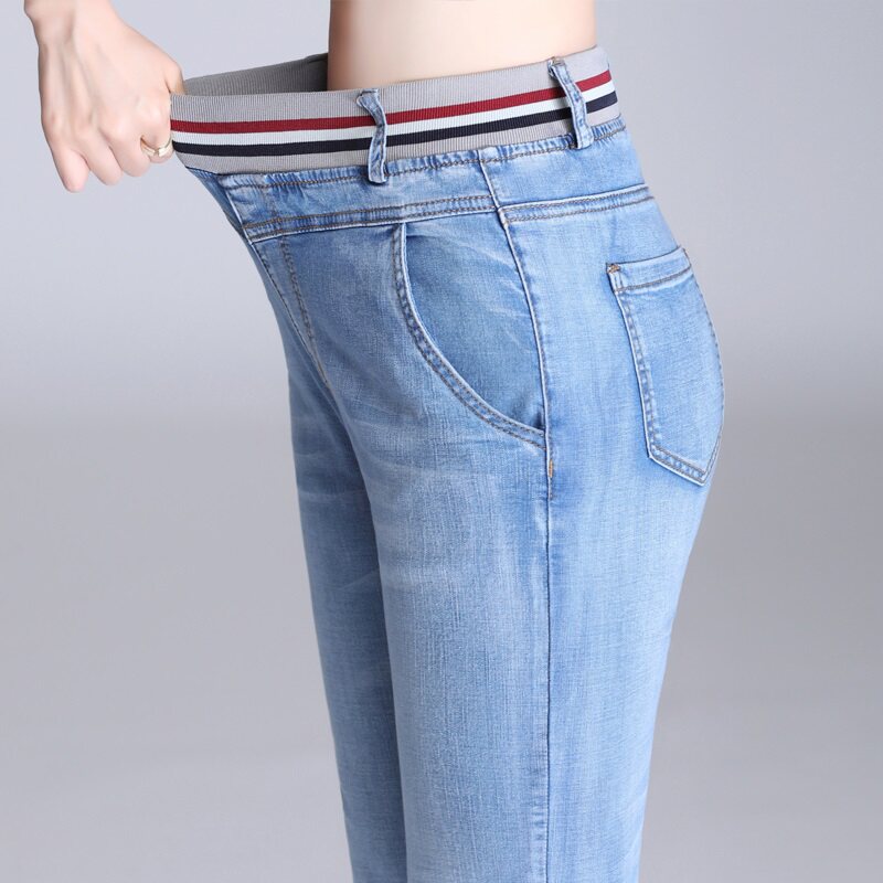 Jeans women's summer thin section large size fat MM Harlan high waist straight tube 2023 new nine points elastic waist mom pants tide