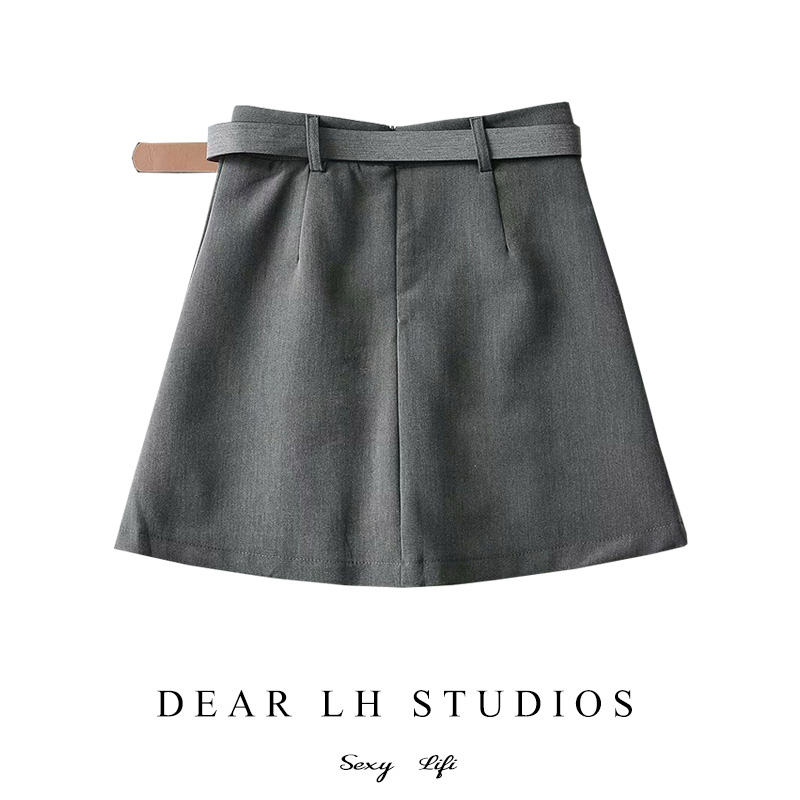 American college wind-proof pleated skirt women's spring and summer new irregular belt A-line skirt skirt