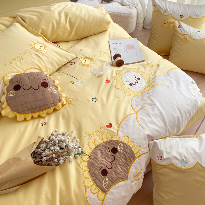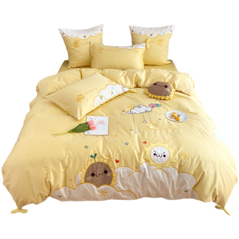 Sunflower 60 long - fluff cotton four - piece small fresh embroidery cartoon all cotton - naked bedding