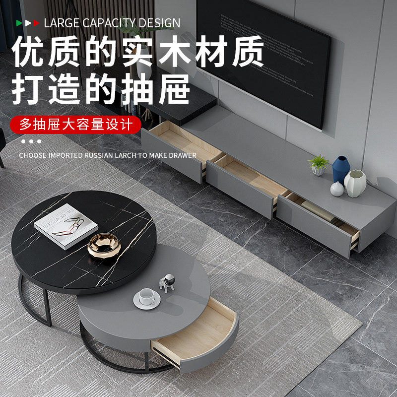 Willpower telescopic TV cabinet (190-260cm) snowflake white rock plate case tea table (80 60cm) extremely simple tea table TV cabinet composition (80 60cm) Serie tea