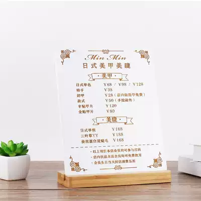 Wooden high-end price chart display board Taimei Manicure nail shop menu design set to make hanging wall