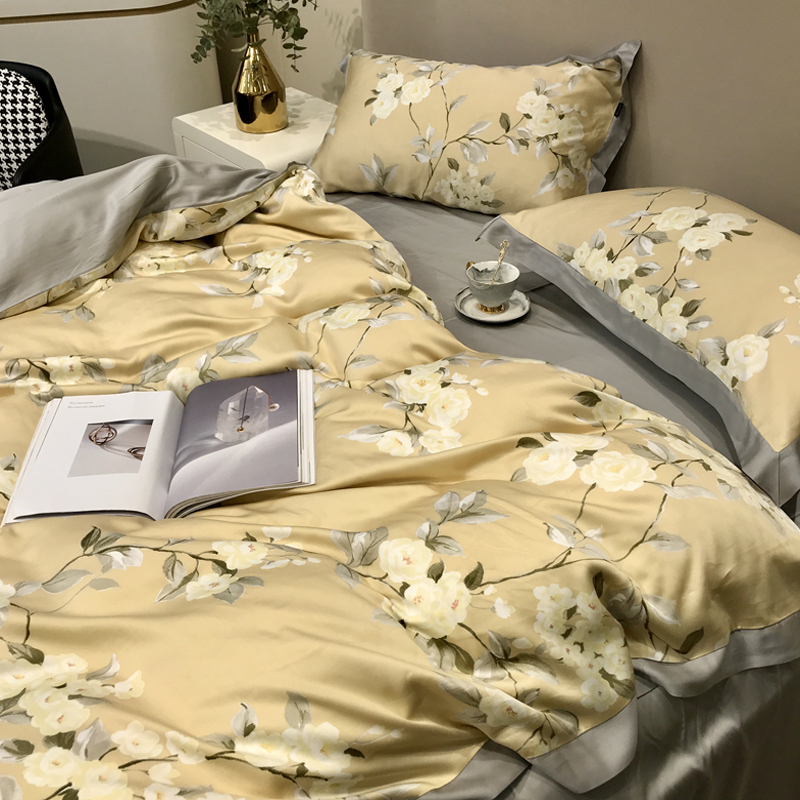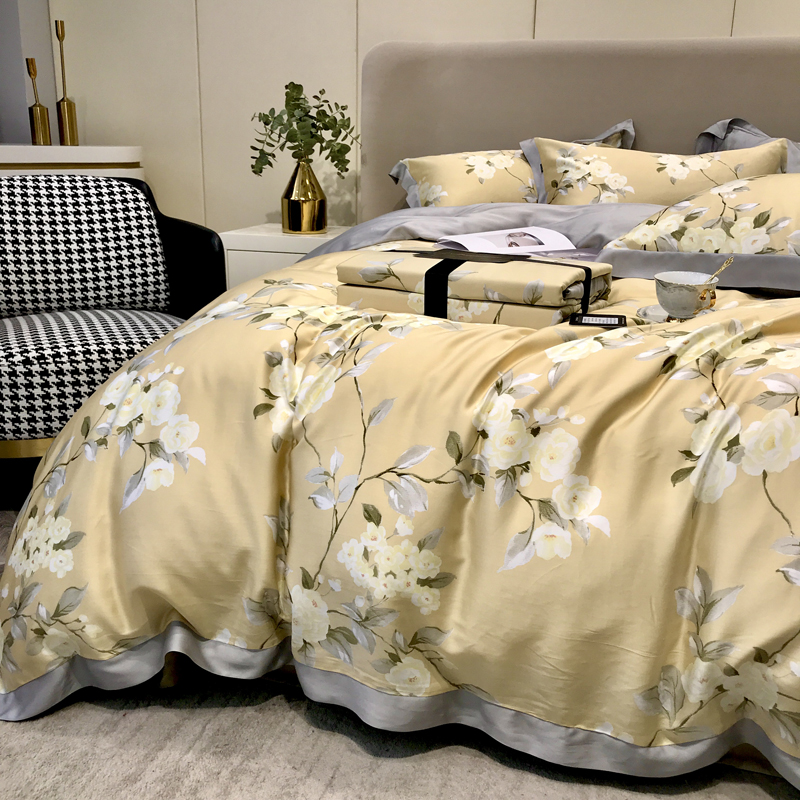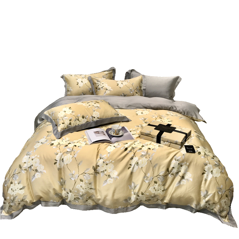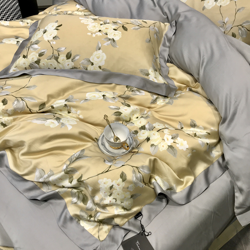 Upscale 80 Sky Silk Four Pieces Naked Sleeping Ice Silk Sliding Summer Bifacial Lesel Tian Garden Wind Quilt Cover Bedding