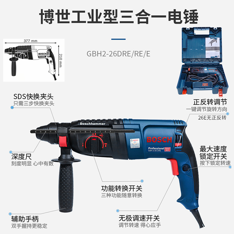Bosch industrial impact drill Rotary hammer drill three-use GBH2-26DRE E multi-function high-power electric pick Dr Tools