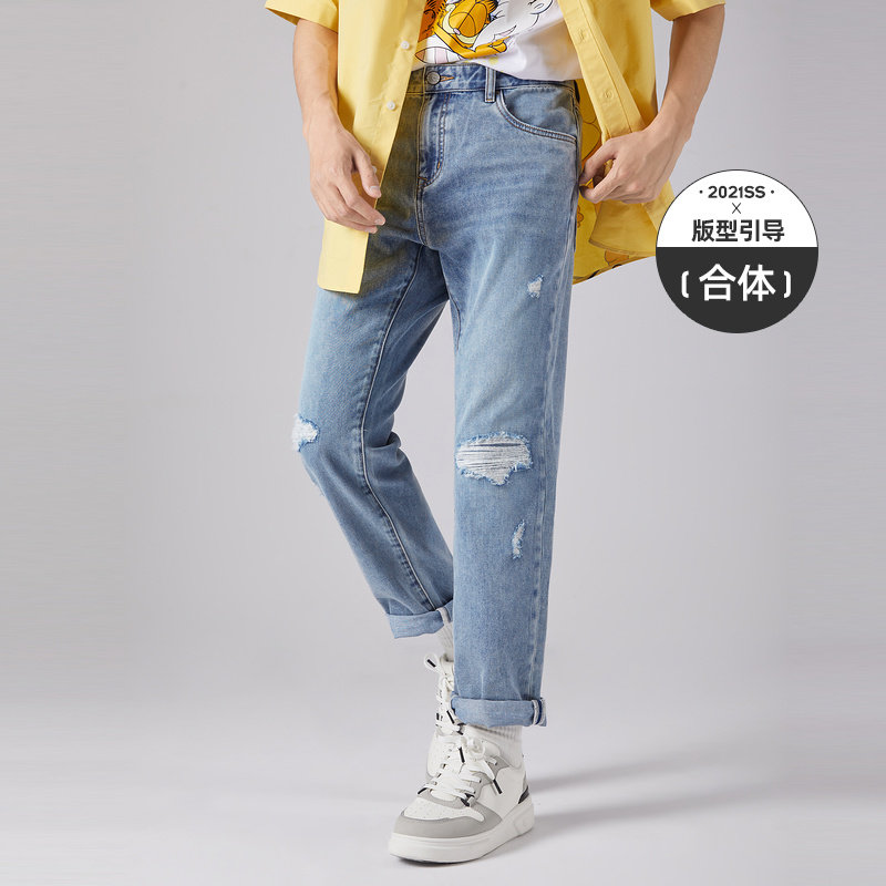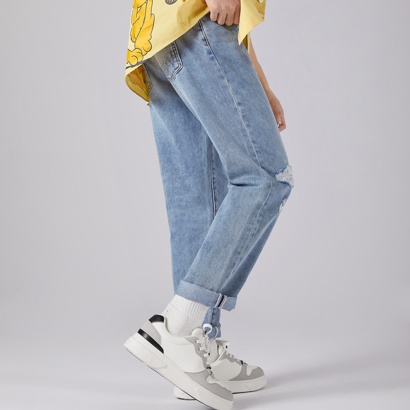 Carbin Men's Clothing Casual Washed Blue Jeans Spring Summer New Breaking Hole Street Ice Oxygen Long Pants Trendy Pants J