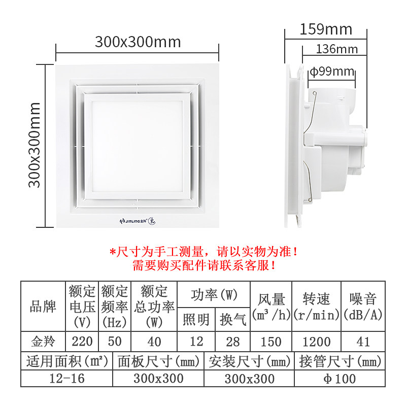 Golden antelope exhaust fan 300 integrated ceiling kitchen make-up room lighting ventilator two-in-one BPT10-23-1Z