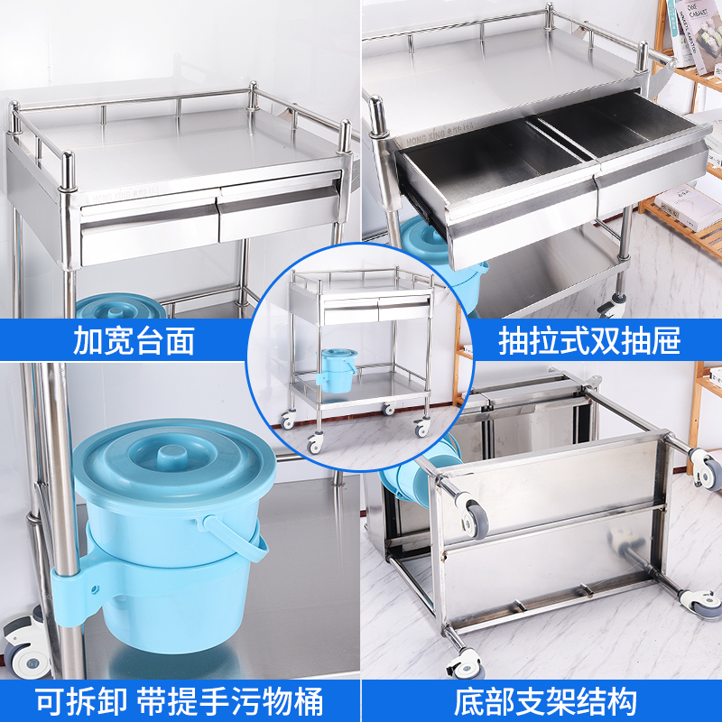 Medical trolley Stainless Steel Medical Treatment Car Surgery Mobile Shelve Trolley Instruments Trolley Universal Wheels