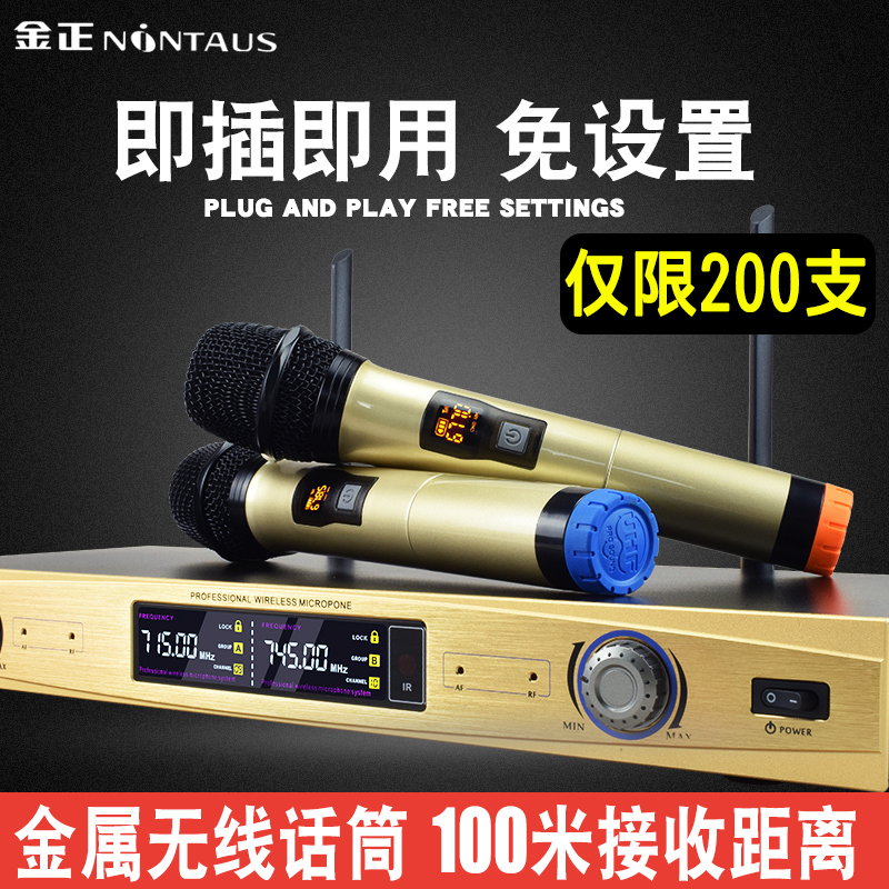 Golden Positive Wireless Microphone A Tug 2 Home K Singing Ktv Family Kara Ok FM U Section Bluetooth Conference Goose Neck Stage TV Professional Ear Mai Wedding Performance Anti-Howl Called Microphone Generic