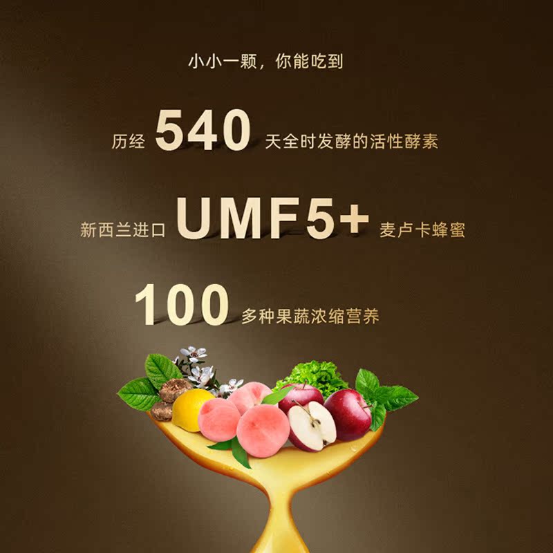 Fruit high fructose syrup McLuca honey (UMF5) concentrated juice (water honey peach concentrated juice apple concentrated juice) Integrated fruit and vegetable flour white granulated sugar malt burnt fine konjac powder (Ginger Powder) Spura bean gum Spurs