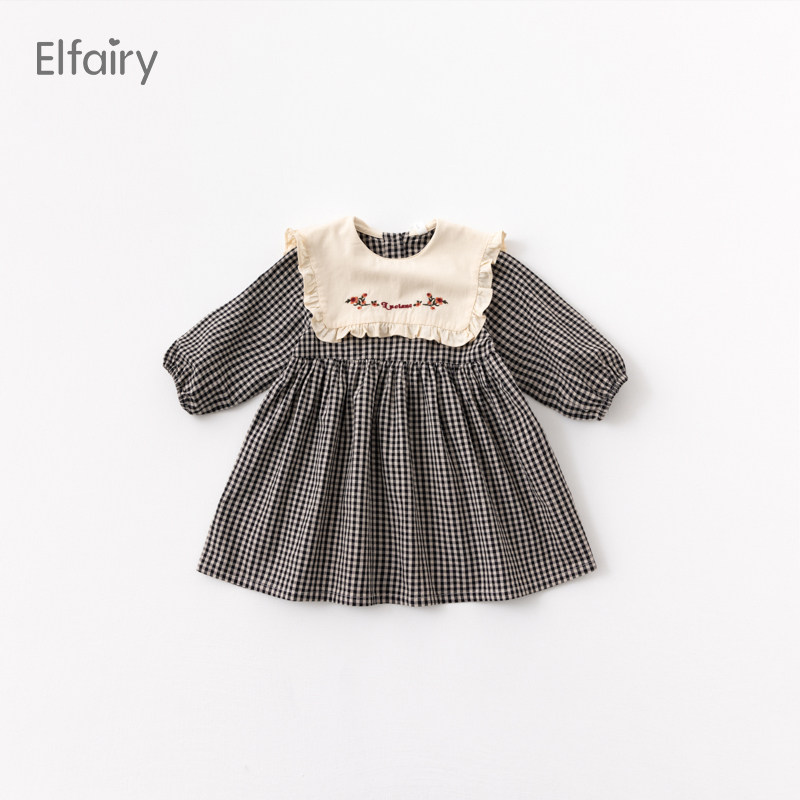 Elfairy girls French dress princess plaid doll skirt baby autumn skirt baby skirt western style cotton